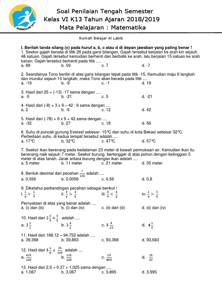35 Prediksi Soal Usp Matematika Sd Mi 2020 Dan Kunci Jawaban Beserta Pembahasannya Website Pendidikan