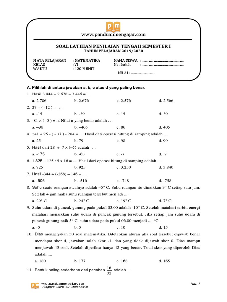 Soal Us Matematika Sd Mi Tahun 2020 Dan Kunci Jawaban Pembahasan Pendidikan Kewarganegaraan Pendidikan Kewarganegaraan