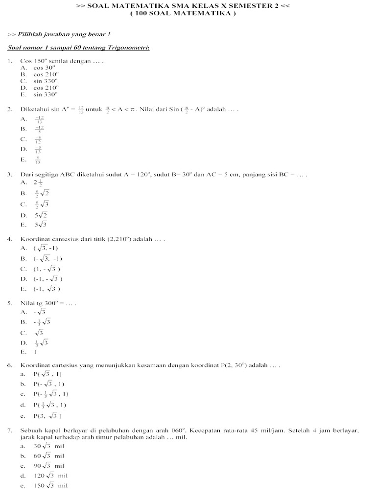 Soal Matematika Sma Kelas X Semester 2 100 Soal Matematika Pilihlah Semester Piano Notes Songs Trending Topics