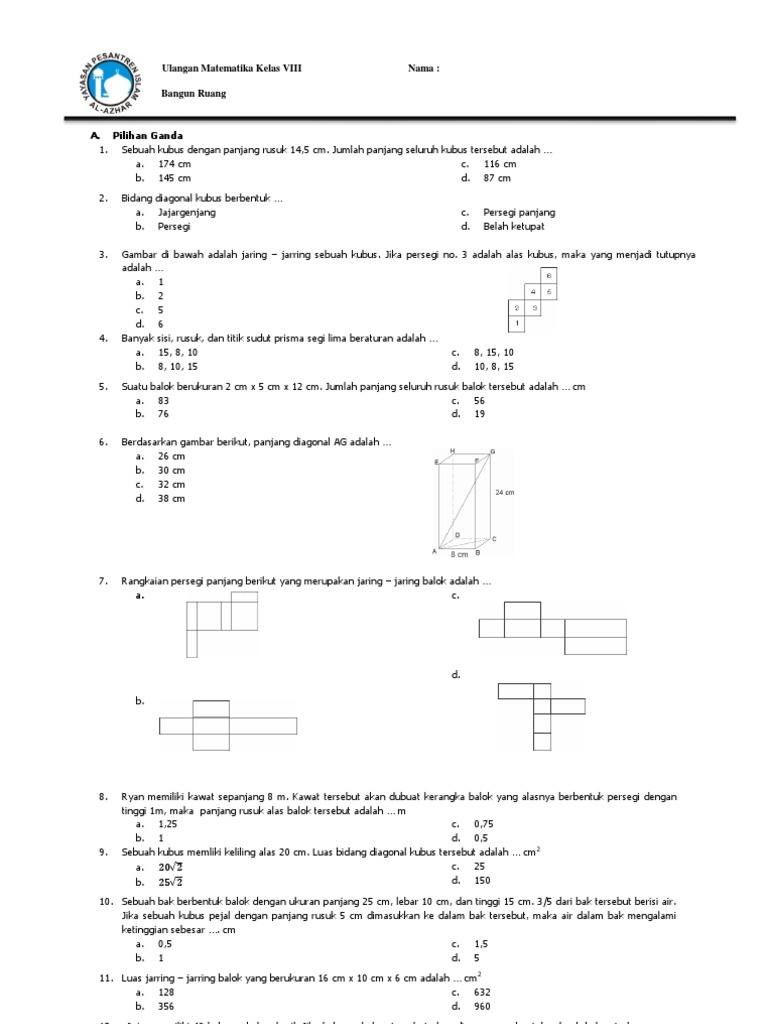 Soal Ulangan Harian Bangun Ruang Sisi Datar Smp Mts Kelas 8 Kurikulum 2013 Dan Pembahasannya Bank Soal Sekolahku