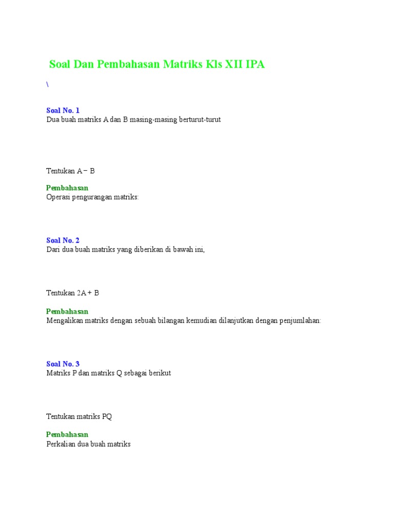 Antiremed Kelas 12 Matematika Antiremed Kelas 12 Matematika Soal Matriks Set 1 Doc Name Ar12mat0301 Pdf Document