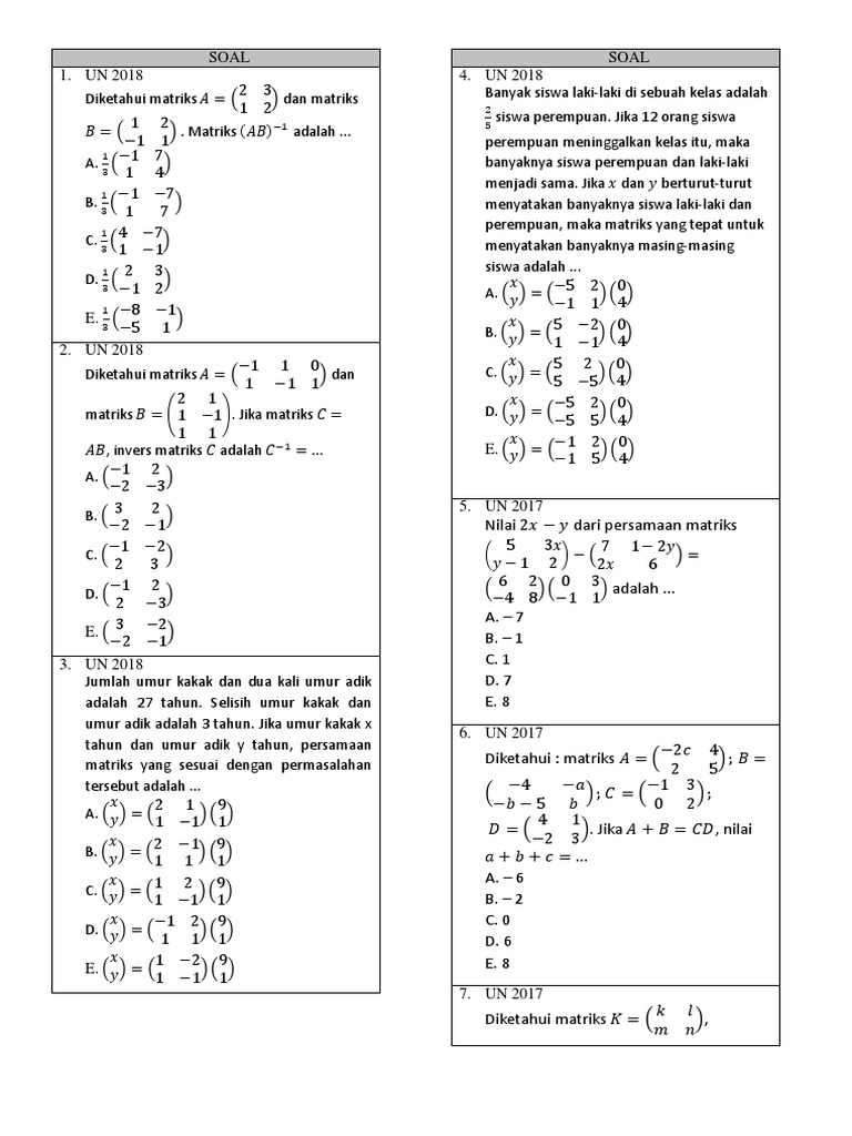 Contoh Soal Matriks Contoh Soal Dan Materi Pelajaran 7