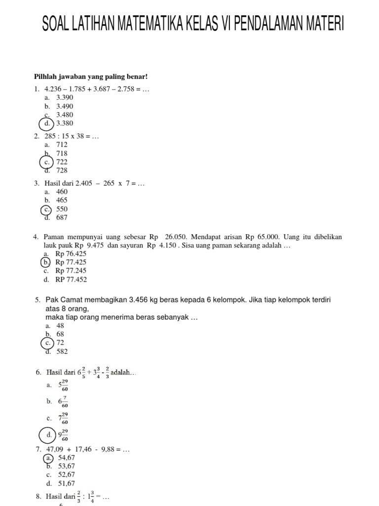 Soal Matematika Kelas 6 Bilangan Bundar Dan Kunci Jawaban Teori Dan Soal