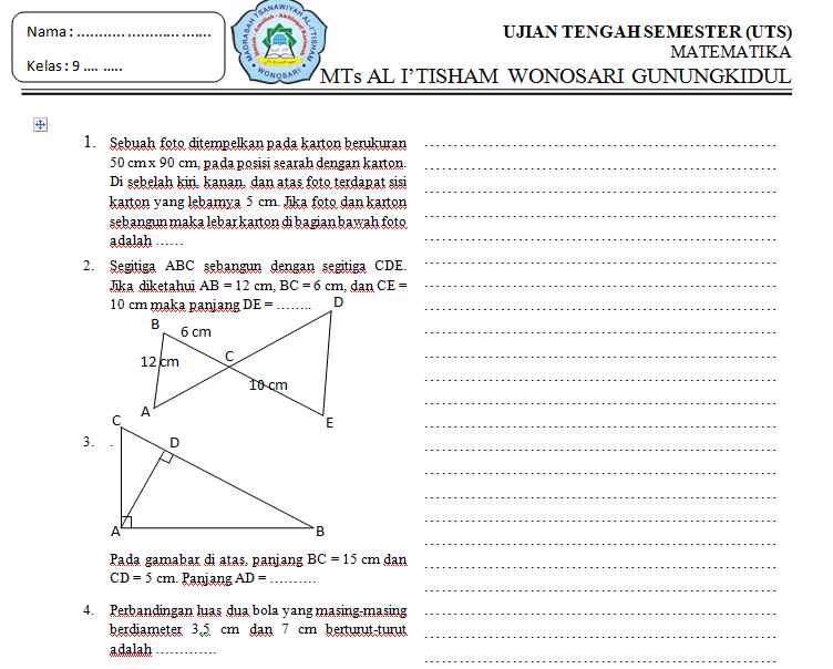 Soal Matematika Kelas 9 Semester 1 Bab Kesebangunan Dan Kongruensi Please Jawab Besok Brainly Co Id