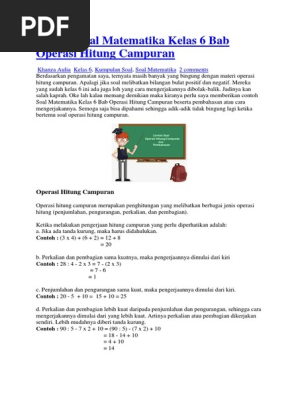 Soal Matematika Kelas 6 Sd Bab 1 Bilangan Bulat Dan Kunci Jawaban Www Bimbelbrilian Pdf Cute766