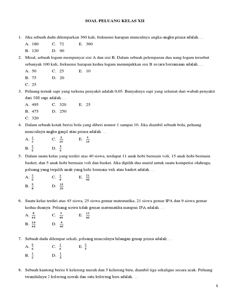 Soal Matematika Kelas 12 Jangan Asal Jawab Dengan Cara Tentang Peluang Nomor 12 Yang C Dan D Brainly Co Id