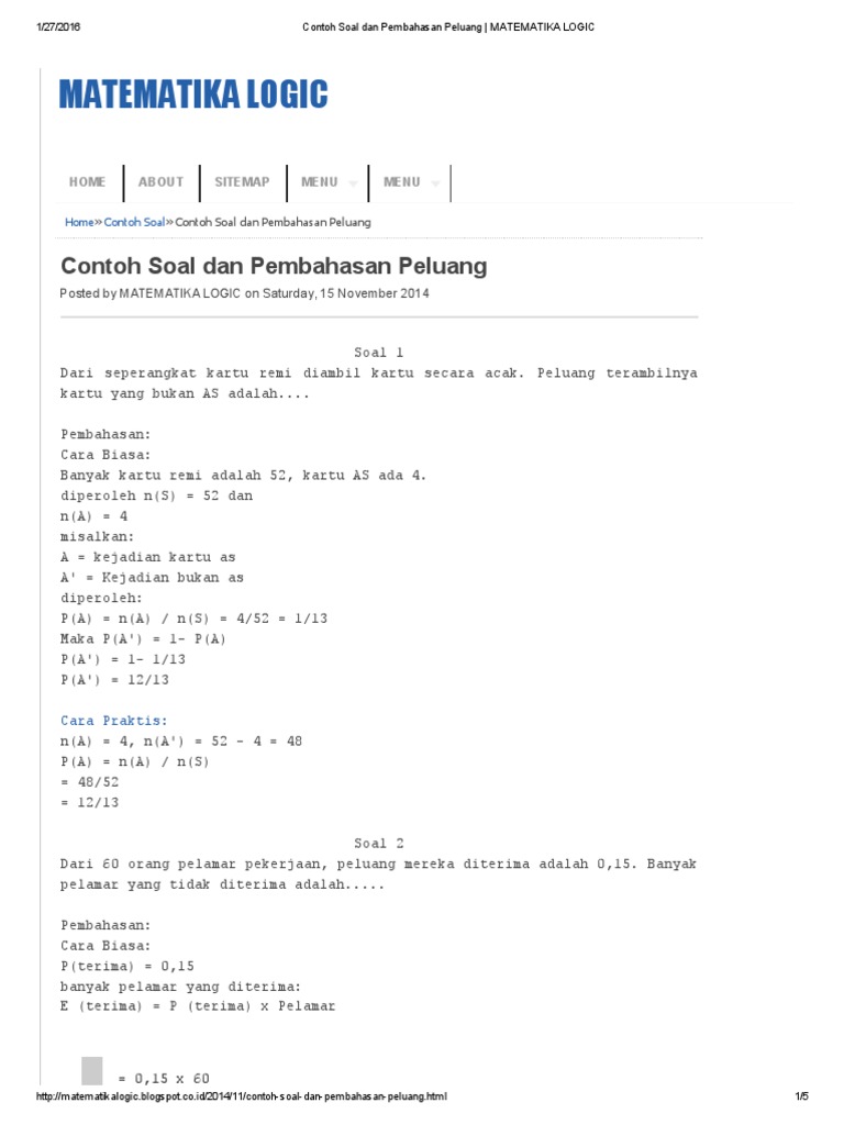 Soal Soal Peluang Dan Pembahasannya Ebtanas Uan