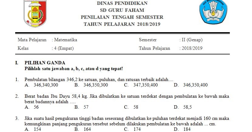 Soal Ulangan Harian Matematika Kelas 4 Sd Pembulatan Panjang Dan Berat Antapedia Com