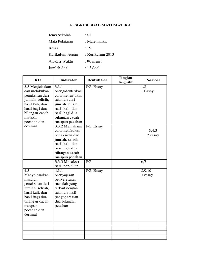 Buku Matematika Kelas 4 Sd Mi Kurikulum 2013 Edisi Revisi 2018 Sanjayaops