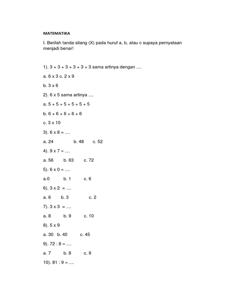 Soal Dan Kunci Balasan Matematika Kelas 2 Sd Mi Perkalian Dan Pembagian Teori Dan Soal