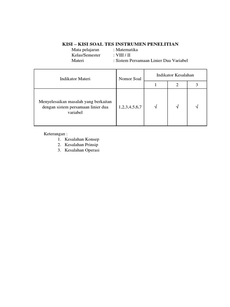 Instrumenfix Identifikasi Kesalahan Siswa Dalam Menyelesaikan Soal Cerita Matematika Sistem Persamaan Linear Dua Variabel