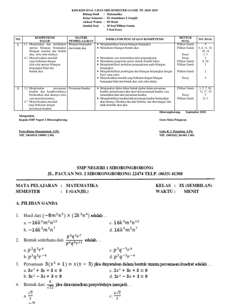 Pemerintah Kota Denpasar Dinas Pendidikan Kisi Kisi Penulisan Soal Ujian Semester Ganjil Kelas Ix Pdf Document