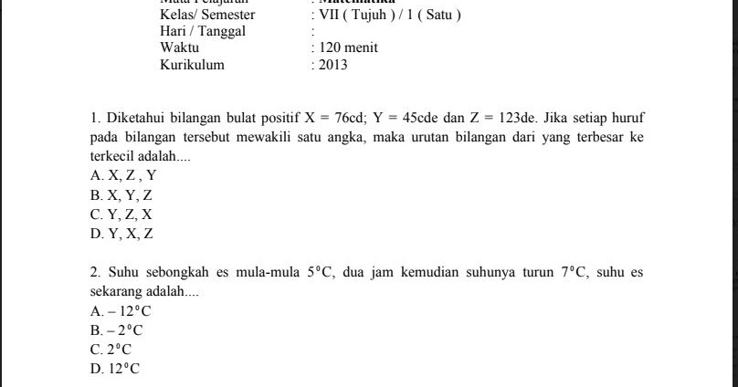 Download Kumpulan Soal Pts Kelas 7 Smp Mts Semester 1 Kurikulum 2013 Semua Pelajaran Kaskus