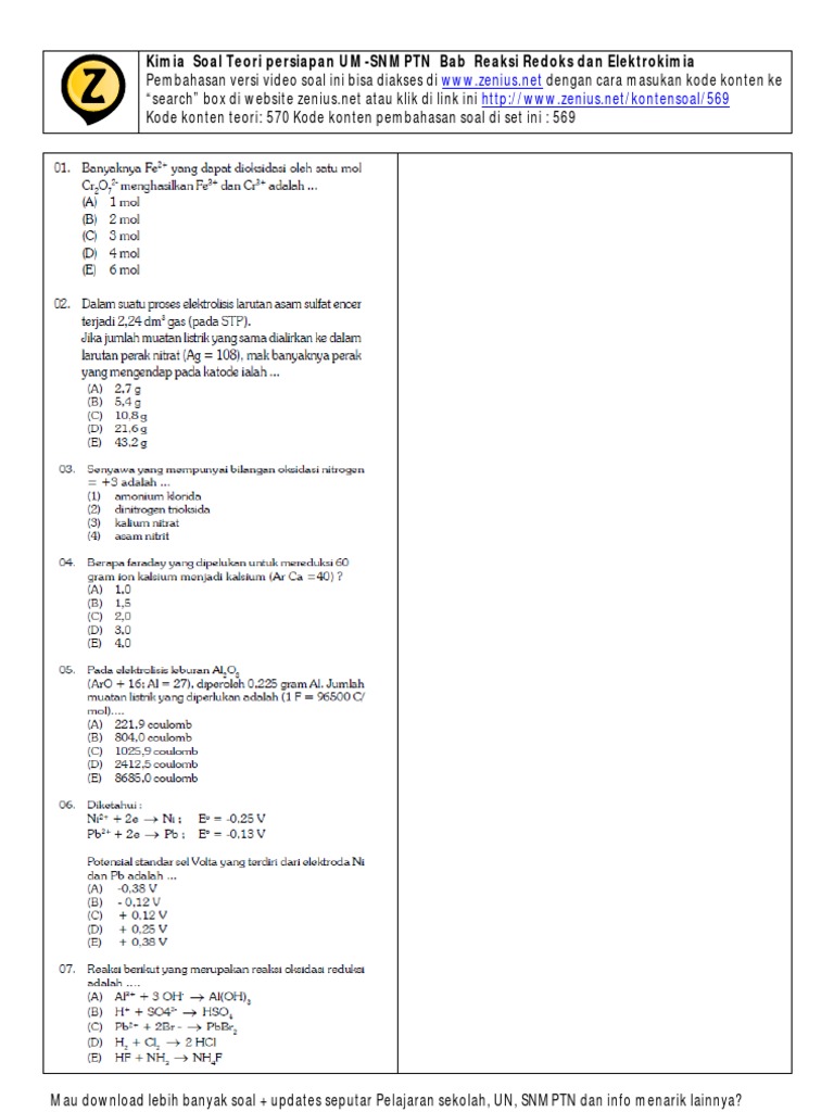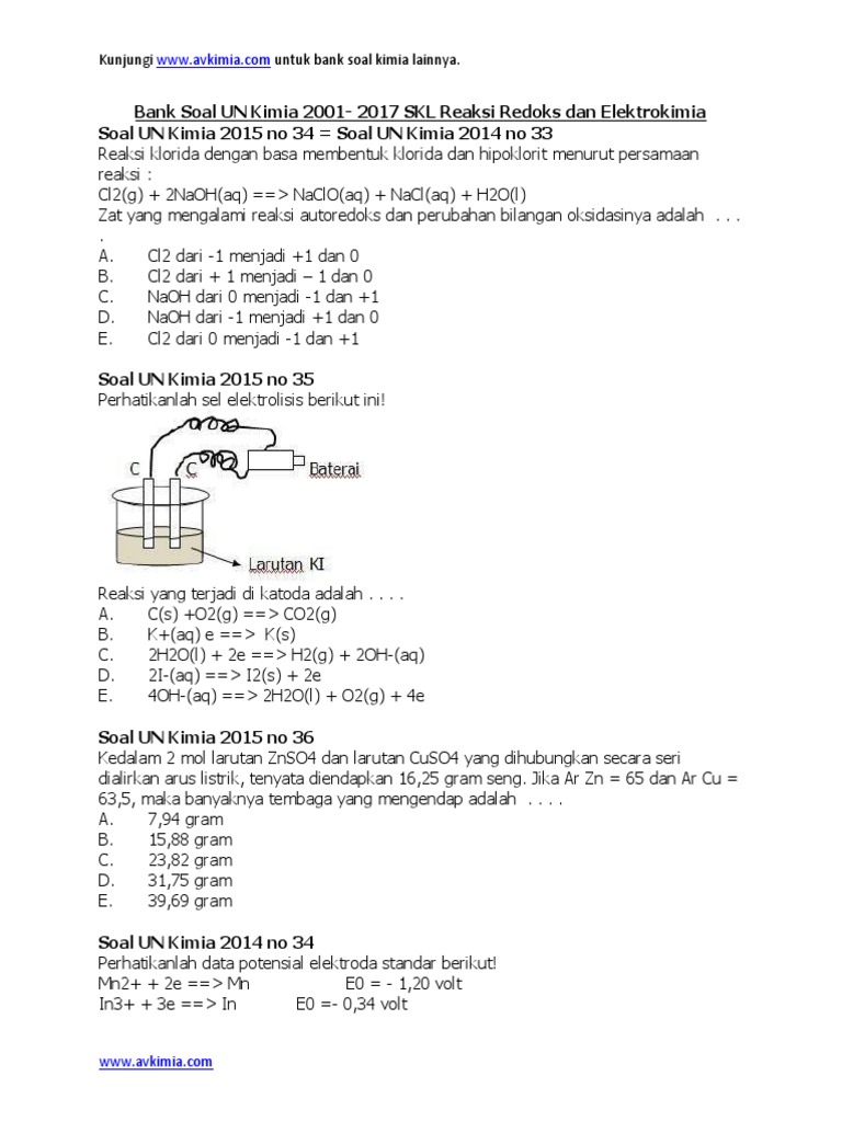 Soal Reaksi Redoks Dan Elektrokimia Reaksi Redoks Dan Elektrokimia Halaman 1 Kunci Dan Pembahasan Soal Ini Bisa Dilihat Di Dengan Memasukkan Kode 569 Ke Menu Search