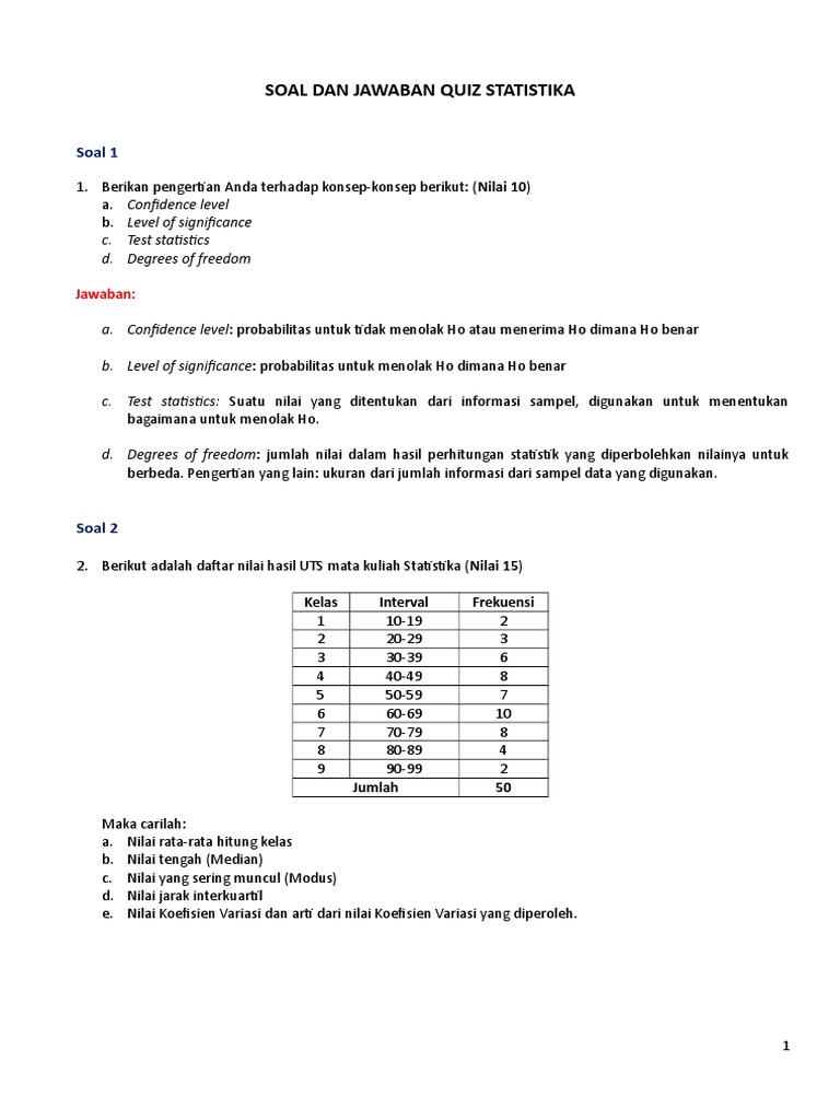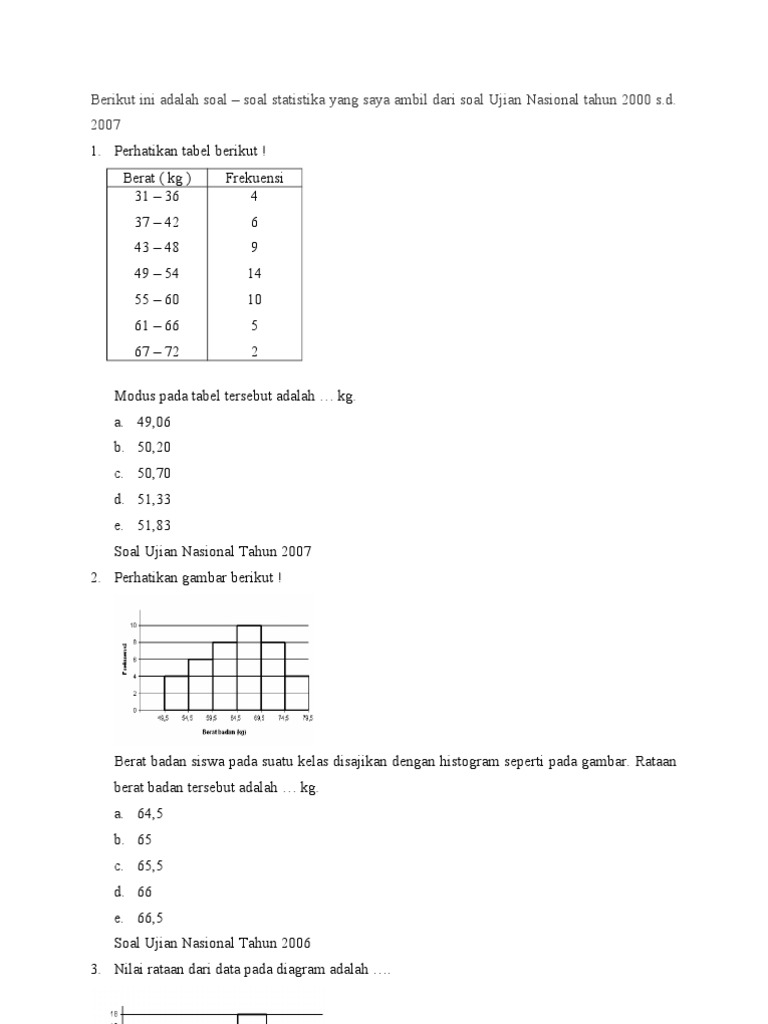 Soal Statistik Dan Pembahasan Untuk Sma Kelas Xi Doc Pembahasan Soal Statistik Soal Petunjuk Pilihlah Salah Satu Jawaban Yang Paling Tepat 1 Median Course Hero
