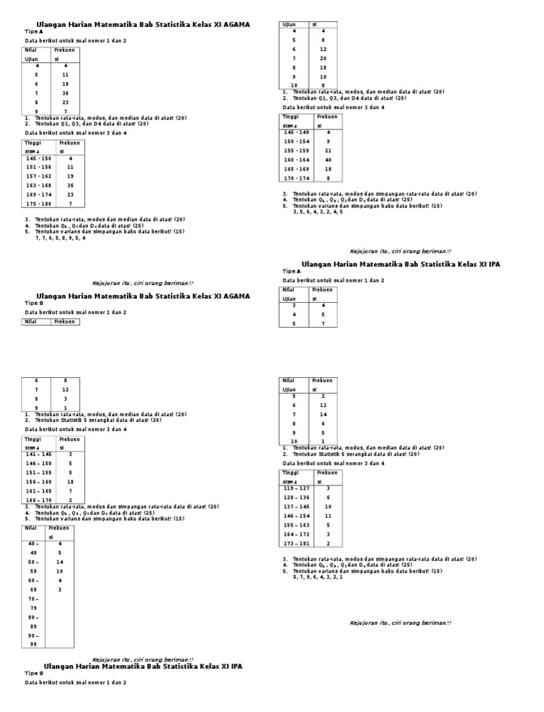 Ulangan Harian Matematika Statistika Kelas Xi Agama
