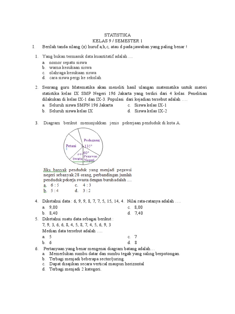 Kumpulan Soal Materi Statistika Kelas Semester Ix 1 1 Copy By Kumpulan Soal Materi Statistika Kelas Semester Ix 1 1 Nilai Ulangan Seorang Siswa Adalah 5 6 4 4 8 3 7 4 7 3 Pdf Document