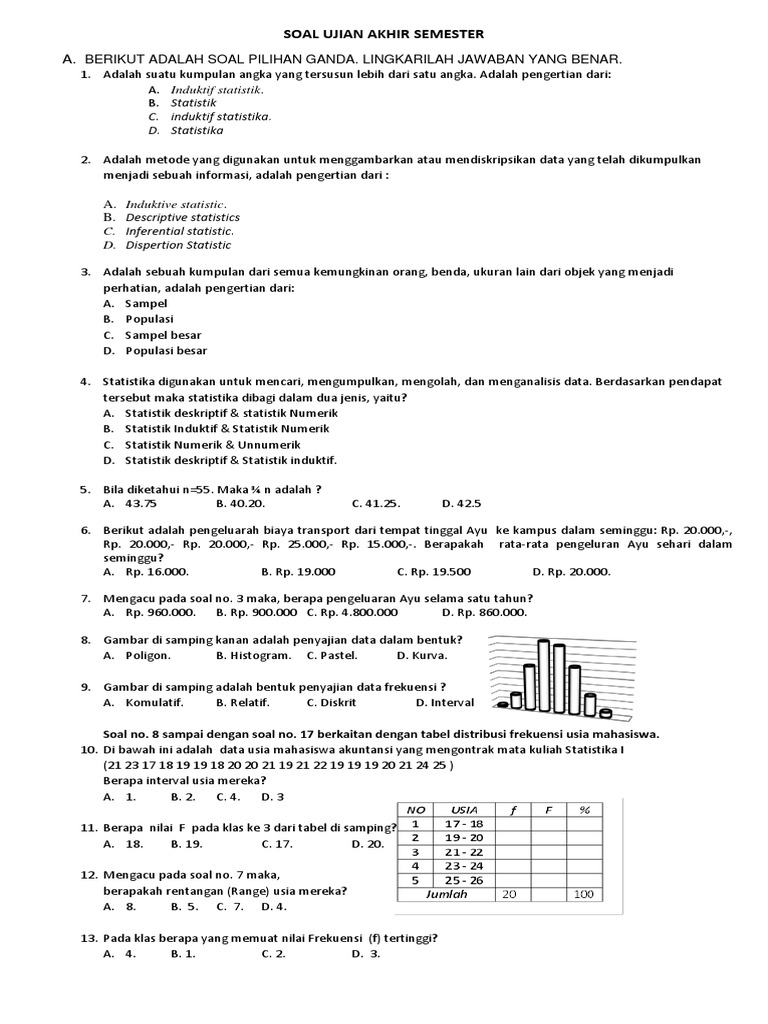 Soal Ujian Ut Universitas Terbuka Statistika Dan Kunci Jawaban Untuk Semua Semester Soal Universitas Terbuka
