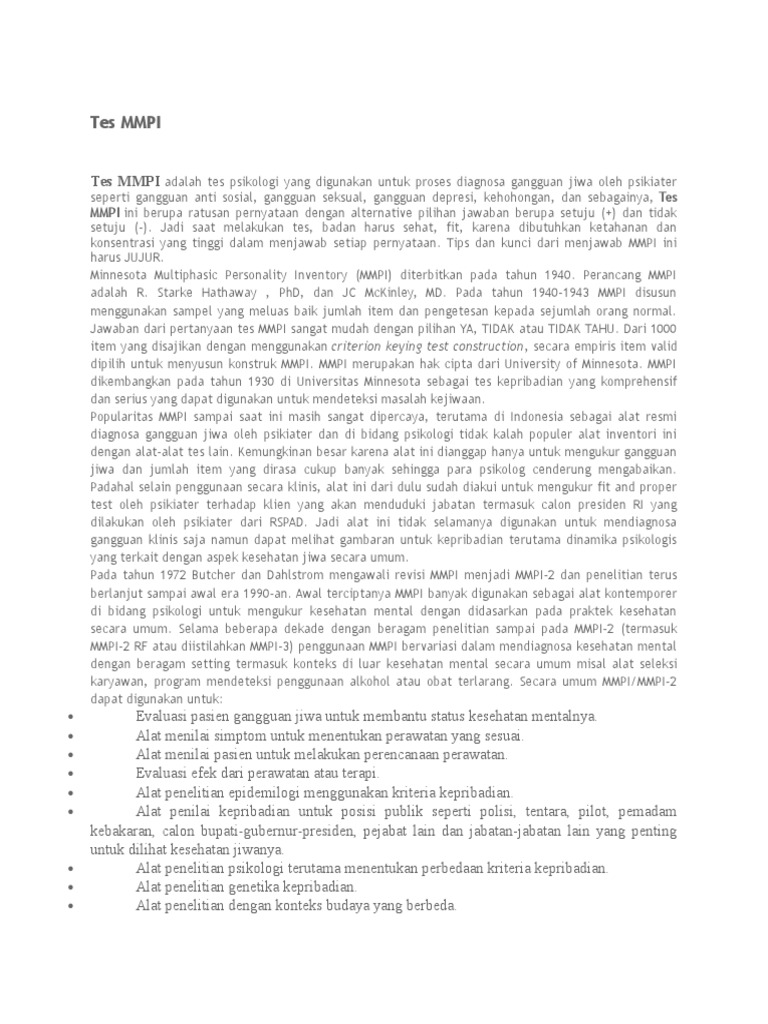 Paket Alat Tes Psikologi Mmpi Minnesota Multiphasic Personality Inventory Lengkap Dengan Aplikasi Skoring Nya Pdf Download Gratis