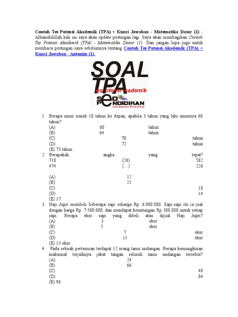 Tes Potensi Akademik Matematika Dasar