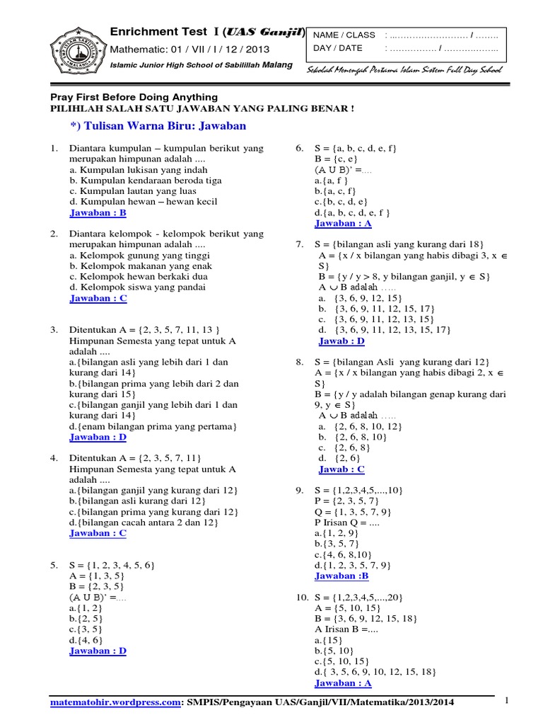Soal Latihan Dan Jawaban Uas Matematika Kelas 9 Smp Semester 1 Kurikulum 2013 Kumpulan Soal Uas