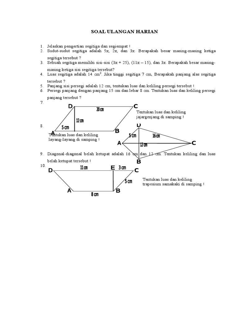 Download Contoh Soal Soal Ulangan Harian Matematika Kelas 7 Smp Mts Semester 2 Library Pendidikan