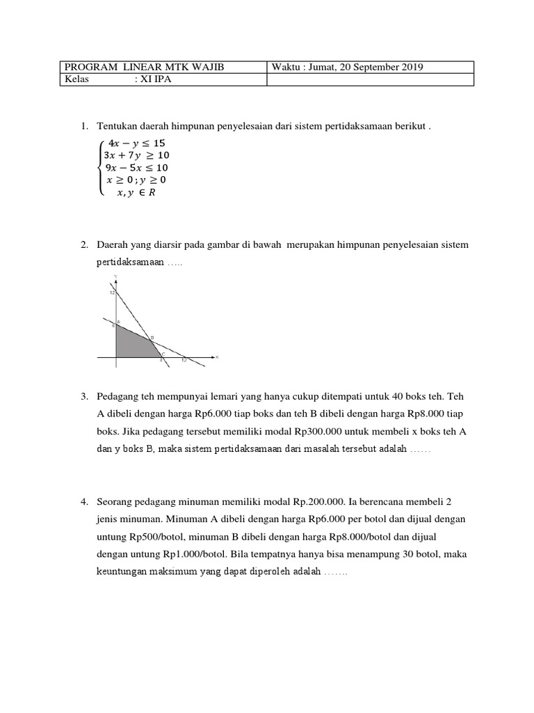 Web Viewremedi Ulangan Harian Daerah Penyelesaian Untuk Soal Program Linear Dengan Fungsi Sasaran Doc Document