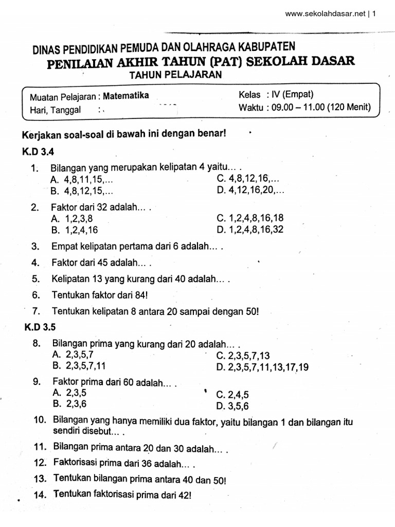 Soal Dan Kunci Jawaban Latihan Ulangan Umum Matematika Kelas 4 Semester 1 Gasal Serba Serbi Guru Matematika Kelas 4 Matematika Matematika Kelas 5