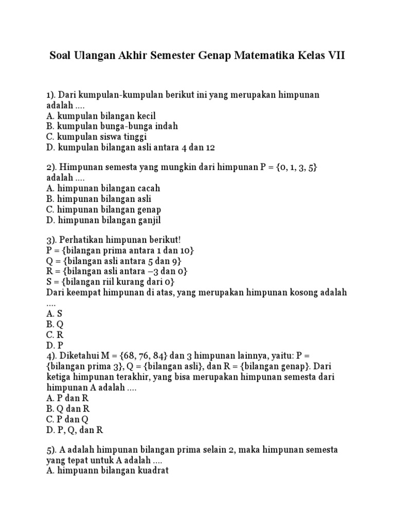 Soal Uts Matematika Kelas 7 Semester 1 Wawasan Pendidikan Nusantara Sch Paperplane