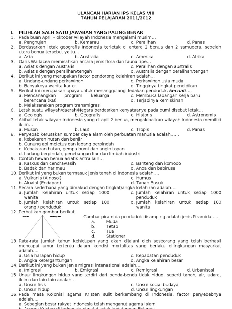 Soal Uts Pts Kelas 8 Smp Mts Semester 1 Ganjil Kurikulum 2013 Tp 2019 2020 Idn Paperplane