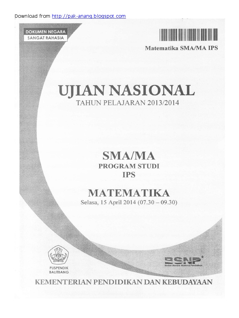 Contoh Soal Ujian Nasional Matematika Sma Ips Ujian Nasional