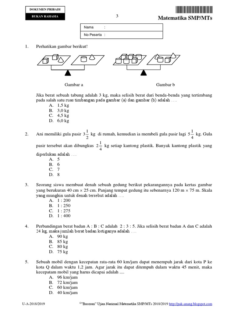 Download Soal Dan Pembahasan Un Unbk Atau Unkp Matematika Smp 2018 Paket 2 M4th Lab
