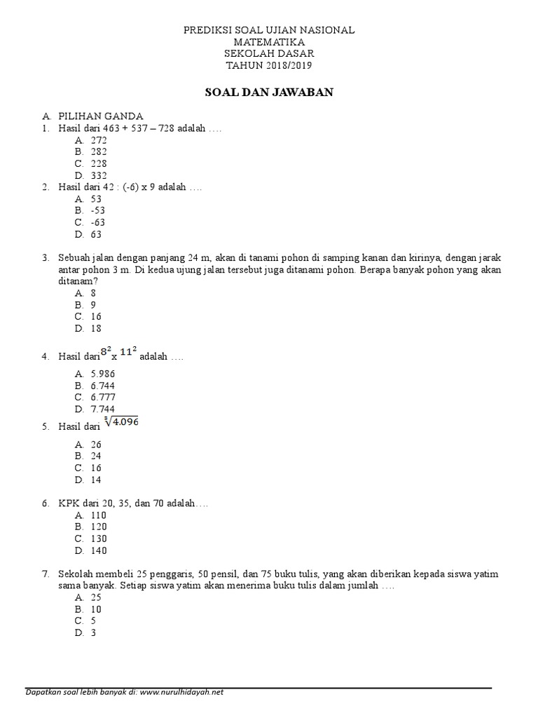 40 Contoh Soal Latihan Un Matematika Sd Kunci Jawaban Foods Food Wine Free 30 Day Trial Scribd
