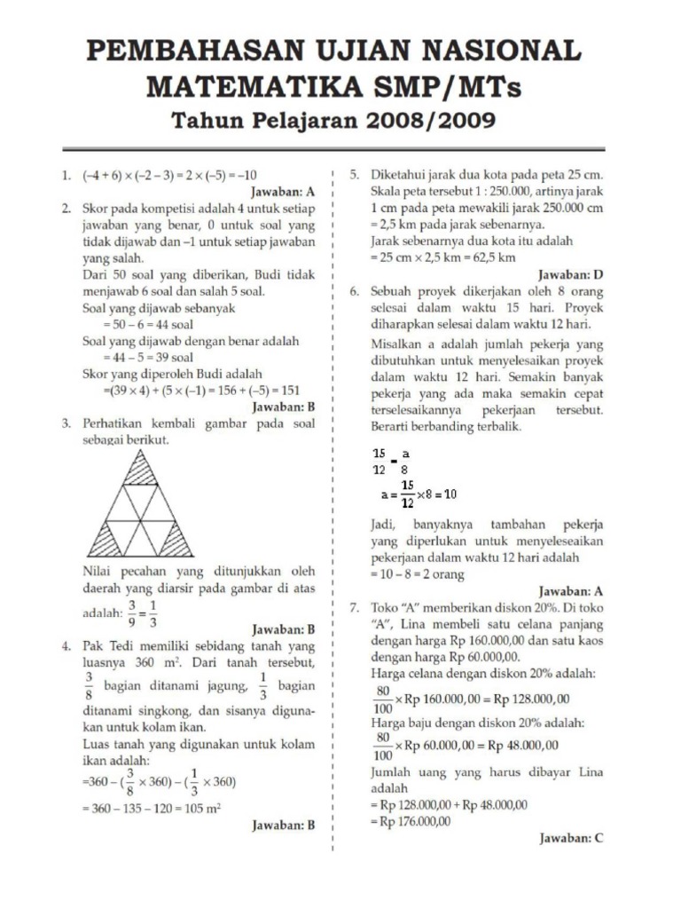Download Bocoran Soal Pembahasan Un Unbk Matematika Smp 2020