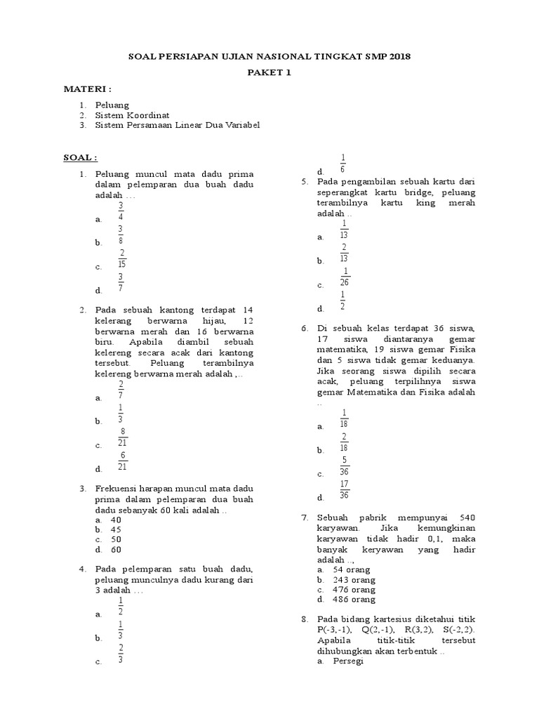 Suksesun2017 Latihan Un Smp 2017 Hkm Matematika Jawablah Soal Peluang Pada Gambar Terlampir Brainly Co Id
