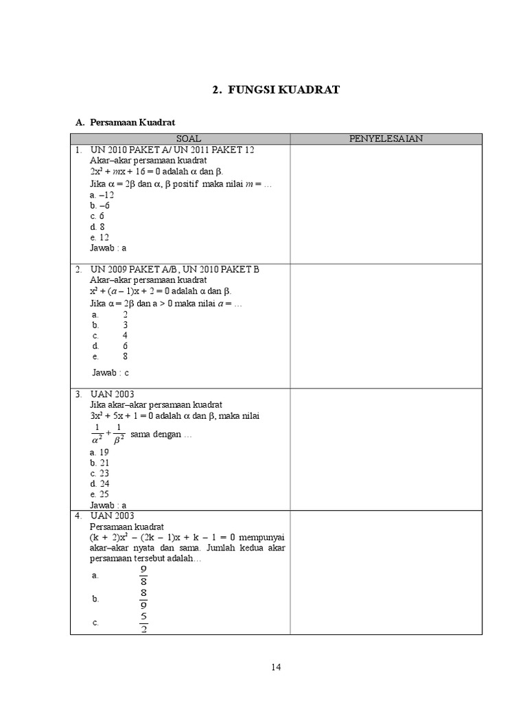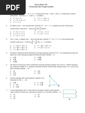 Dipindai Soal Un Matematika Bentuk Sederhana Dari Adalah D Akar Akar Persamaan Kuadrat Pdf Document