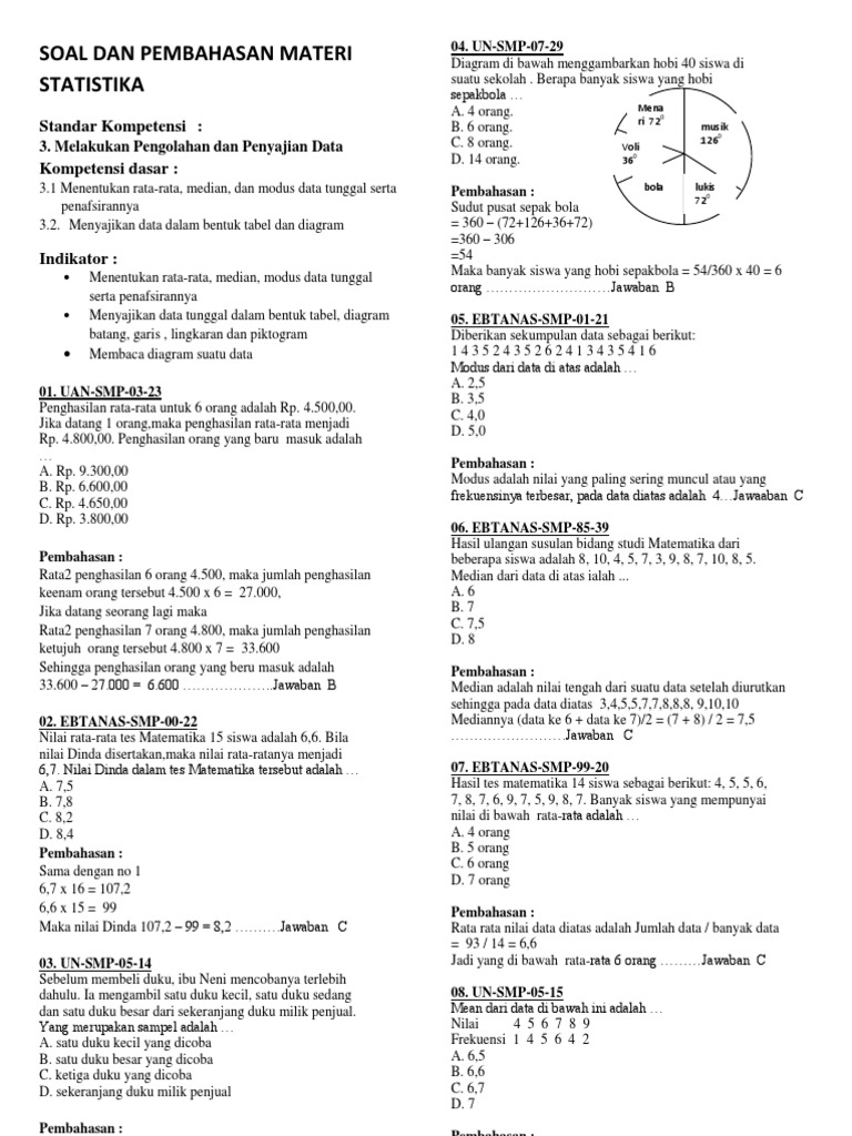 Soal Un Dan Jawaban Statistika Magister Matematika