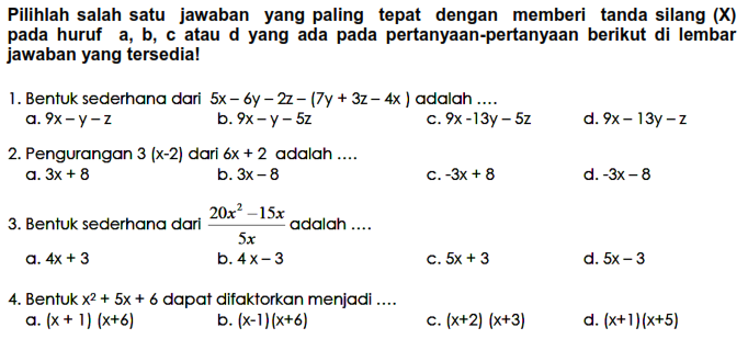 Soal Tengah Semester 2 Matematika Kelas 8