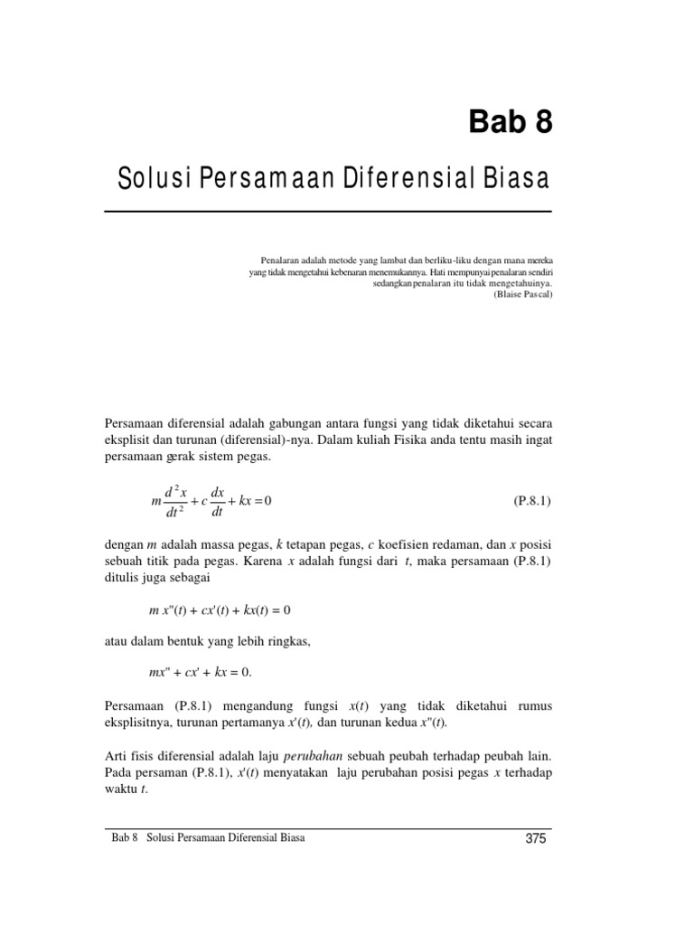 Persamaan Di Erensial Orde 2 Ltpb Itb Akan Mulai Dengan Solusi Jika S X 0 Atau Versi Homogen Persamaan Diferensial Linear Homogen Orde 2 Dengan Koe Sien Konstan