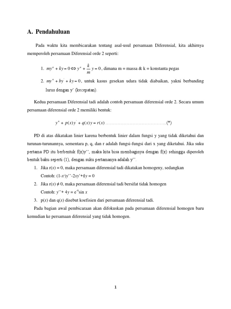 Persamaan Di Erensial Orde 2 Ltpb Itb Akan Mulai Dengan Solusi Jika S X 0 Atau Versi Homogen Persamaan Diferensial Linear Homogen Orde 2 Dengan Koe Sien Konstan