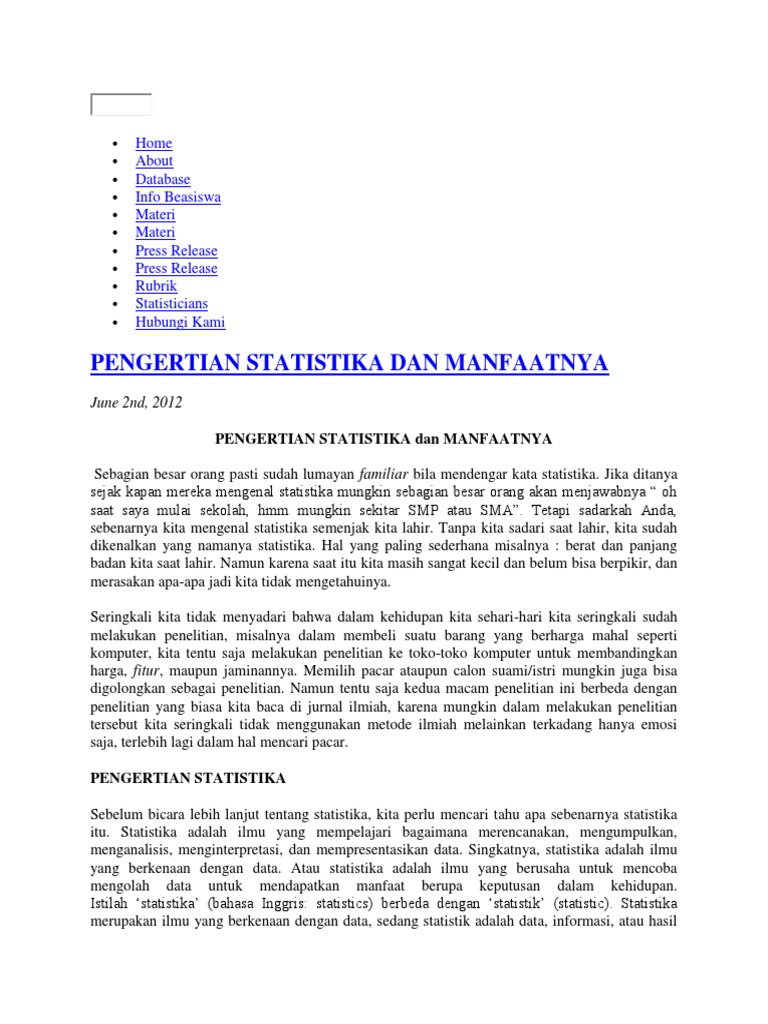 Pengertian Statistika Definisi Fungsi Peran Manfaatnya