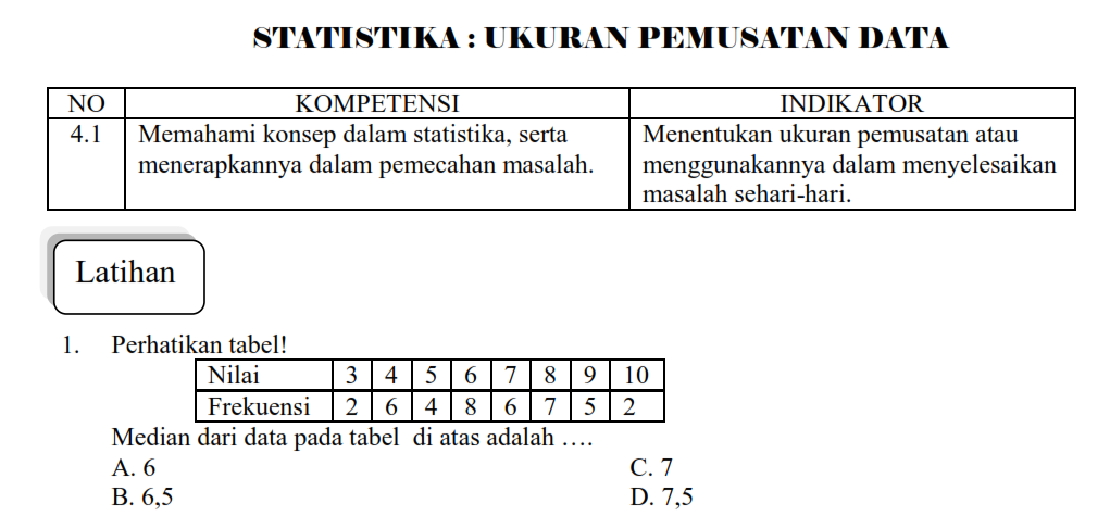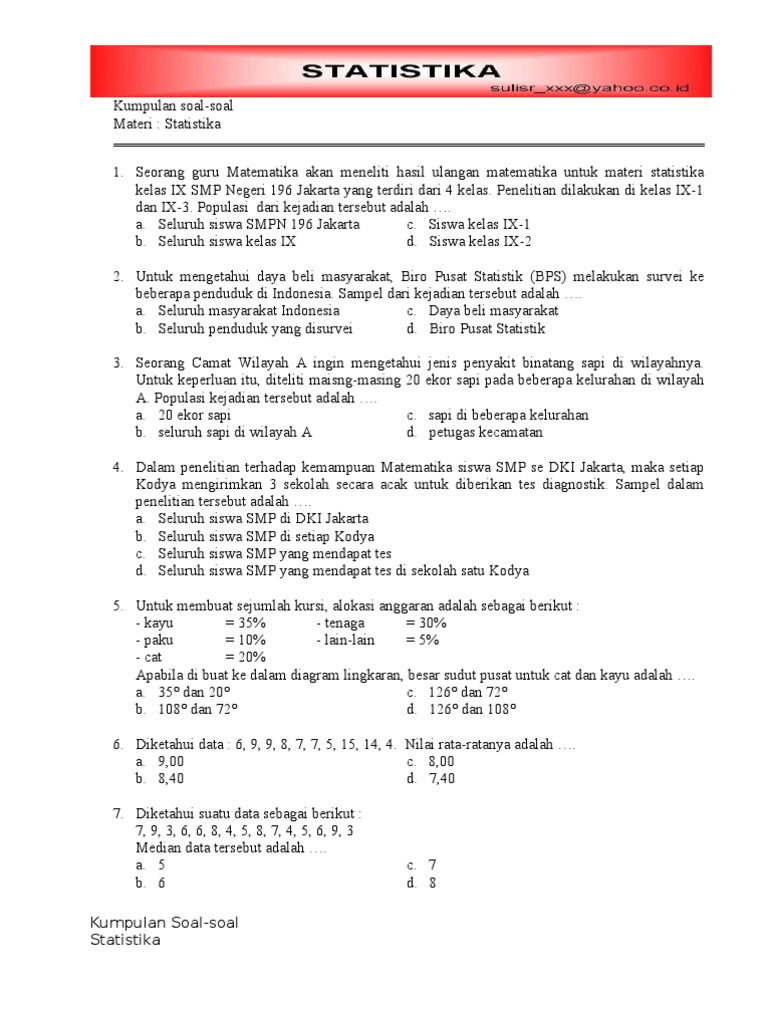 Statistika smp kelas 7. 2 download soal matematika kelas 7 file word docx 21 share this. Oleh admin diposting pada 14 mei 2015. Contoh soal matematika kelas 7 smpmts dan kunci jawabannya.