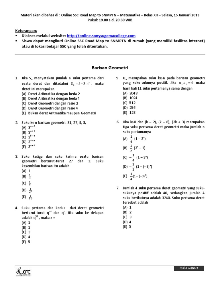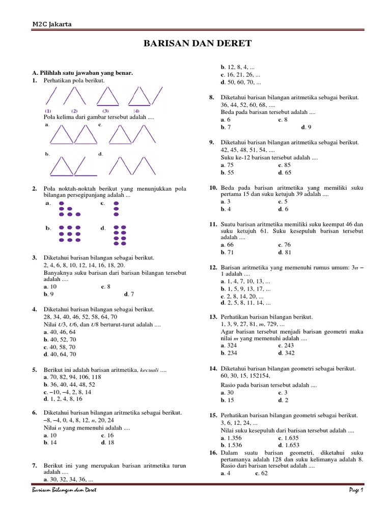 20 Jumlah N Suku Pertama Deret Aritmetika Dinyatakan Dengan 2 4 Suku Ke 9 Dari Deret Aritmetika Tersebut Adalah A 30 B 34 C 38 D 42 E Pdf Free Download