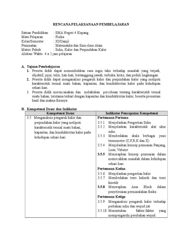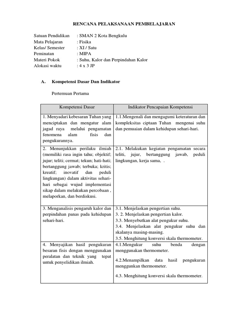 Pdf Pengembangan Perangkat Pembelajaran Fisika Sma Untuk Topik Suhu Dan Kalor Menggunakan Model Pembelajaran Inquiry Dengan Metode Pictorial Riddle