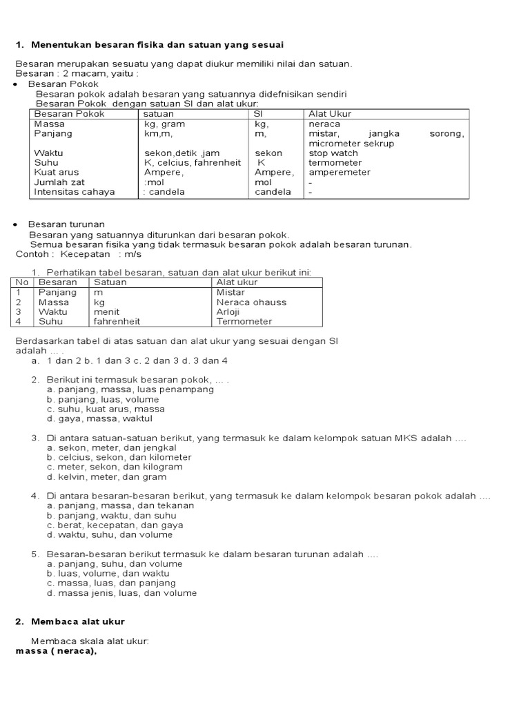 Pasangan Besaran Pokok Satuan Dalam Sistem Internasional Si Dan Alat Ukur Berikut Yang Sesuai Adalah Pdf Free Download