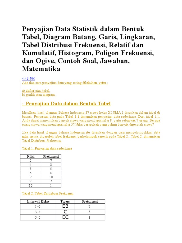 Statistika Lingkungan Distribusi Frekuensi Dan Nilai Sentral Minggu Ke 2 Pdf Download Gratis