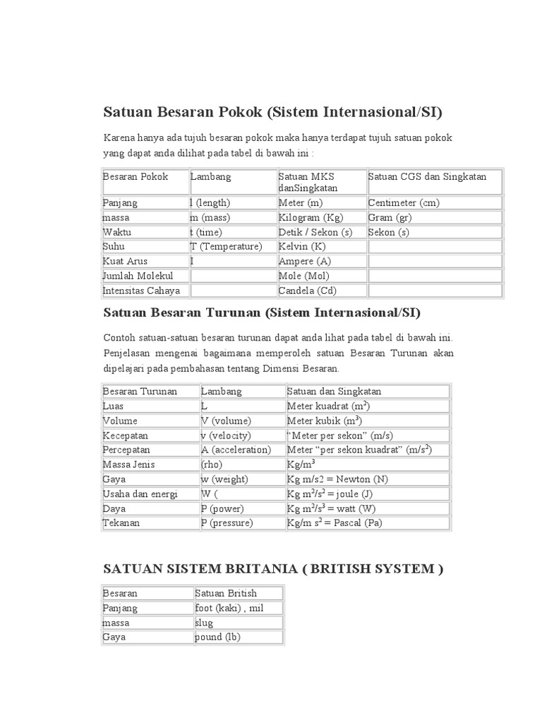 Besaran Pokok Dan Besaran Turunan Serta Contoh Tabel Macam Lengkap