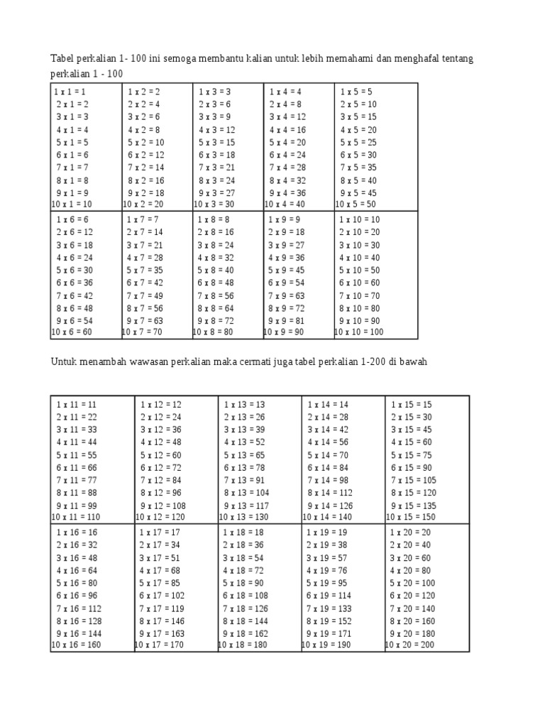 Tabel Perkalian 1 20 Belajar Pendidikan Seni Kertas Canon Creative Park