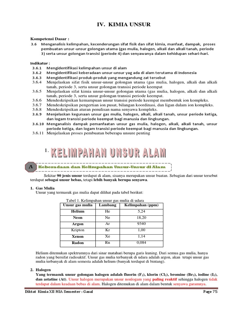 Bab 3 Kimia Unsur Standar Kompetensi 3 Mendeskripsikan Karakteristik Unsur Unsur Penting Kegunaan Dan Bahayanya Serta Terdapatnya Di Alam Pdf Free Download
