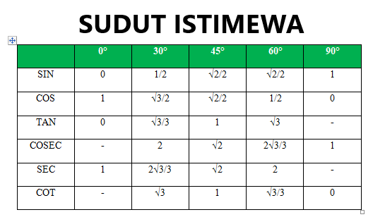 Tabel Trigonometri Sudut Istimewa Sin Cos Tan Lengkap
